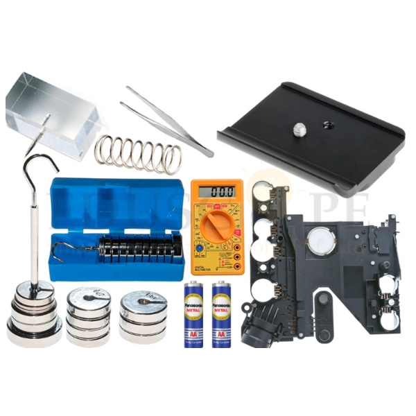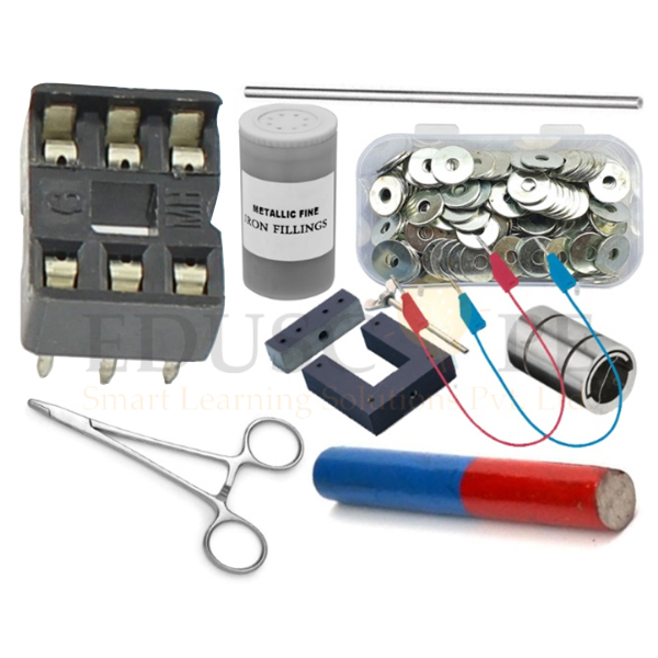 Kit includes : (1) Wool Cloth, (1) Cotton Cloth, (1) Silk Cloth, (1) Glass Rod, (1) Ebonite Rod, (1) Lucite Rod